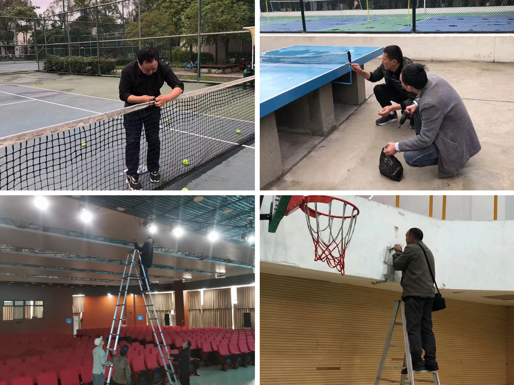 两校区教学区的物业保障、体育场馆的日常维护……这些都是后勤物业人的首要任务。在日复一日的工作中,他们会定期对两校区所辖区域进行安全隐患排查及设施设备检修,确保消除学校各个教学楼栋、体育场馆、公共区域的安全隐患。会场灯光、场馆隔离网、门禁闸刀、翻皮的地板、破损的座椅,经过能工巧匠一番修补,都焕发出了新的生命,确保了学校教学科研活动的正常进行。