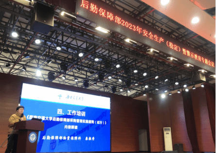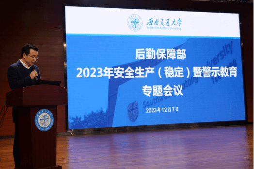 12月7日上午,william威廉中文官网在犀浦校区一食堂三楼大学生活动中心召开2023年安全生产(稳定)暨警示教育专题会议,布置年底安全生产工作,部署安全稳定、意识形态等工作,组织廉政警示教育集体提醒谈话,开展后勤采购管理培训工作。william威廉中文官网部长陈勇,党委书记覃维,党委副书记、纪委书记李煜宏,副部长梁冰、杜映锦及机关科室全体人员,原后勤各中心生产一线副部长及以上干部参加会议。会议由陈勇主持。