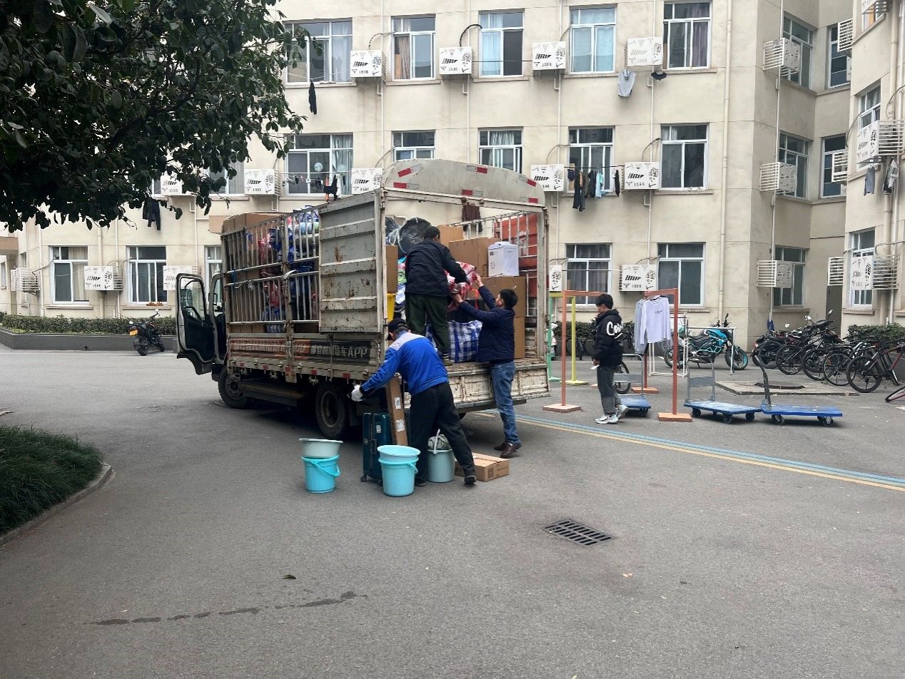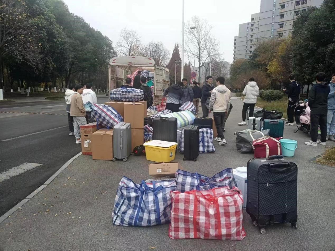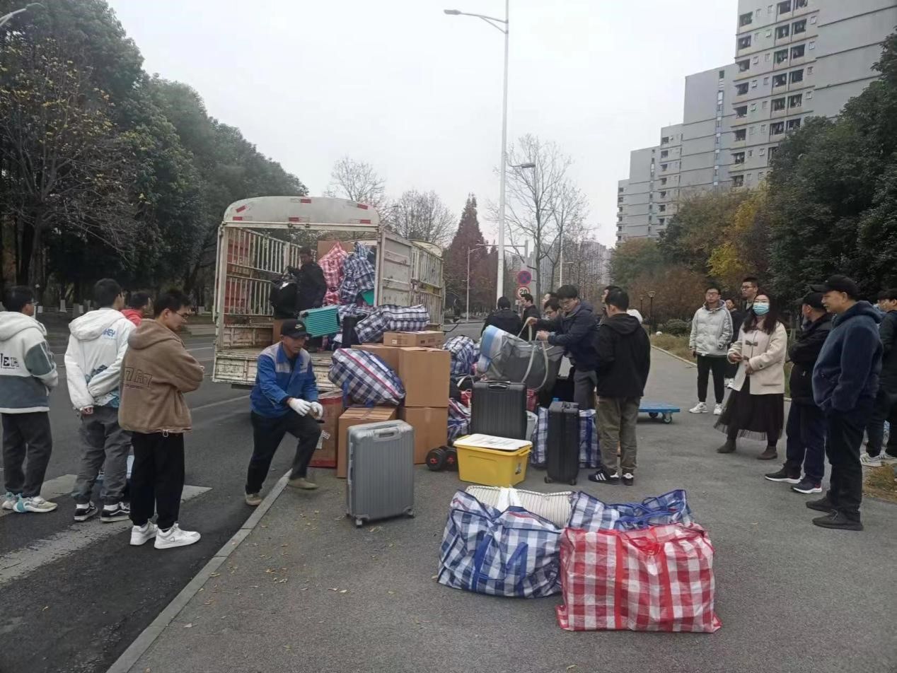 此次倒迁学生为学院定位在犀浦校区但未倒迁的2022级硕士研究生,为保证此次倒迁工作顺利完成,公寓管理与服务中心提前多方沟通协调、认真组织落实,通过对犀浦校区博士生、硕士生楼及男女生宿舍进行调整,整合宿舍资源,拟定倒迁空房间共38间及其他空床位。12月2日,组织30余名保洁员工对犀浦鸿哲斋4#、5#、7#楼共38间倒迁学生宿舍进行全面清洁、消毒。同时为每位搬迁学生水卡提前储存10元水费,空房间储存10度电量,做好水电保障、钥匙领用、空调保障等工作。2023年12月13日一早,公寓管理与服务中心安排工作人员到达现场,协助同学行李装车,犀浦校区工作人员同时做好迎接同学的准备。在整个搬迁过程中,公寓管理与服务中心工作人员一直坚守在现场,积极疏导、帮助搬运、行李装车等,现场整齐有序。中午12点之前,100余名同学的行李搬运工作顺利结束。