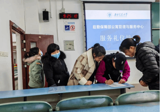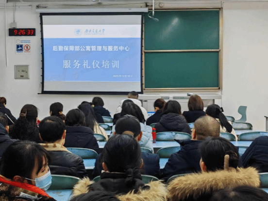为进一步强化员工的服务意识和工作礼仪规范,更好地为师生提供规范化、人性化服务,按照公寓管理与服务中心培训工作安排,12月15日上午,在犀浦校区二号教学楼X2235教室开展员工服务礼仪培训。班长及以上人员,值班保洁员工代表,新入职员工参加培训,培训会议由中心副主任成铁军主持,爱玛客公司环境经理及MDC培训认证讲师宦春芳老师授课。
