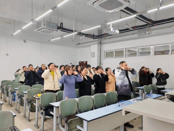 宦春芳以卓越服务为主题,围绕“4111”(4目相对、1个微笑、1声您好、1句谢谢)“2111”(2耳倾听、1心理解、1声歉意、1个行动、1次分享)的服务理念,中间穿插互动和情景模拟环节,从公寓服务实际工作出发,通过生动鲜活的案例为到场员工分享了一场实用又记忆深刻的服务礼仪课。特别是在互动和情景模拟环节,宦老师充分调动员工积极性,引导员工勇敢表达,教会大家面对师生时的正确服务态度以及在师生遇到急事、难事向我们求助时,我们应该如何回应等服务礼仪。