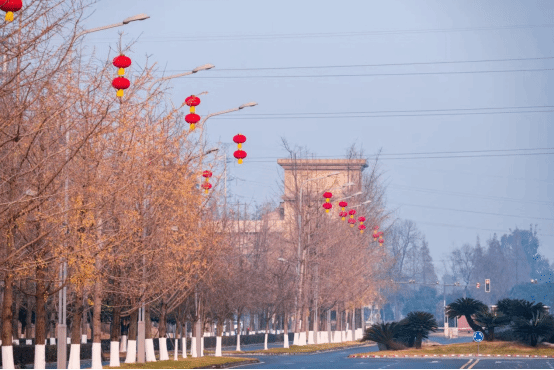 主干道行道树刷白,大红灯笼高高挂