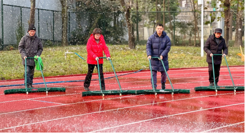 加强日常清扫保洁力度,持续提升校园卫生水平。物业服务中心在面临环卫工人短缺的情况下,迅速行动、积极部署,精心组织工作人员清理两校区地面、草丛、沟渠、房前屋后等区域散落的垃圾。与此同时,还开展了水池、运动场地清洗以及体育设施维修与保洁等工作。