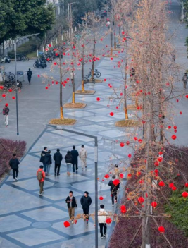 行道树挂满小灯笼、中国节,喜庆洋洋