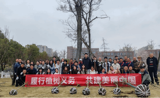 大家聚集在双一流3号实验楼测量基地北侧绿地,由物业绿化师傅分组指导,分工明确,配合默契,有的铲土挖坑、有的扶苗回填、有的踩实修整、有的浇水,还有的仔细观察树苗是否摆正,整个环节衔接有序,呈现出一片热火朝天的劳动场景。经过一个多小时的辛勤劳动,一株株新栽下的树苗整齐划一、昂首挺立,迎着和煦的春风,焕发出蓬勃生机。
