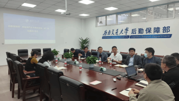 会议主要围绕两个方面进行,一是由能源与维修服务中心代理副主任周永泰对中心前期调研、摸排、及布点方案等前期准备工作向与会领导和老师代表进行汇报,中心主任郑永川针对校内用电负荷情况、一期初步选点考虑进行补充说明。二是由参与沟通交流的各单位主要负责人、提案老师代表结合实际情况提出意见,并对充电桩设点问题加以讨论。