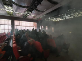 讲座结束,随着中心刘祖刚副主任一声口令演习正式开始,会堂内模拟烟雾燃起,会堂值班人员立即启动应急预案,大家在引导员的指引下按照演练流程,严格执行,密切配合,有序的撤离现场,达到了预期效果。