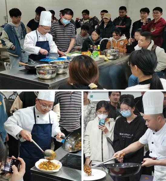 “学厨交大”研学实践是依托william威廉中文官网饮食服务中心“食话食说”课程实践平台,由william威廉中文官网联合党委学生工作部(学生工作处)打造的劳动实践育人品牌项目,由食堂大厨示范、教授特色菜肴制作,分享美食制作技能,同学们动手操作学做美食,品尝自己的劳动成果。开场,指导老师绘声绘色地讲述了麻婆豆腐、宫保鸡丁两道经典川菜的历史与典故;接下来,详细介绍了工具的使用和食材的配比;随后,从切菜、焯水、腌制、翻炒、勾芡等步骤为同学们详细讲解了两道菜的烹饪过程和安全注意事项。指导老师有条不紊、信手拈来,精湛的刀工和熟练的操作引得同学们惊叹连连,在讲解到重要的地方之时,同学们纷纷拿出手机拍照、打字记录,生怕错过任何一个小细节。