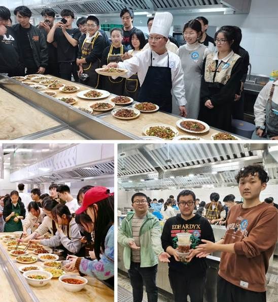 在食材下锅后的滋滋声与抽油烟机的轰鸣声中,同学们化身为“厨神”,不一会,各小组的作品纷纷亮相,指导老师从色、香、味、形等方面进行逐一点评,同学们收获满满,决定回家后一定要给父母露一手。点评环节结束,大家纷纷拿起筷子和勺子,共同品尝劳动成果,脸上洋溢着幸福和喜悦。秉持着不浪费的原则,同学们将自己吃不完的菜品打包,带回宿舍与室友、同学一同分享。