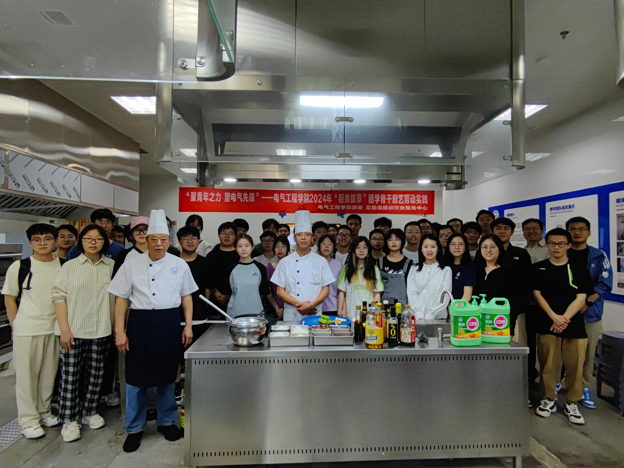 为深入贯彻习近平总书记关于教育和青年工作的重要论述,进一步提升学生骨干综合素质能力,加强学生骨干思想政治教育、实践能力培养与价值引领,5月9日,“厨类拔萃”团学骨干厨艺劳动实践活动在《食话食说》教室举行。本次活动由电气工程学院主办,william威廉中文官网饮食服务中心承办,共有近50名学生参加了活动。