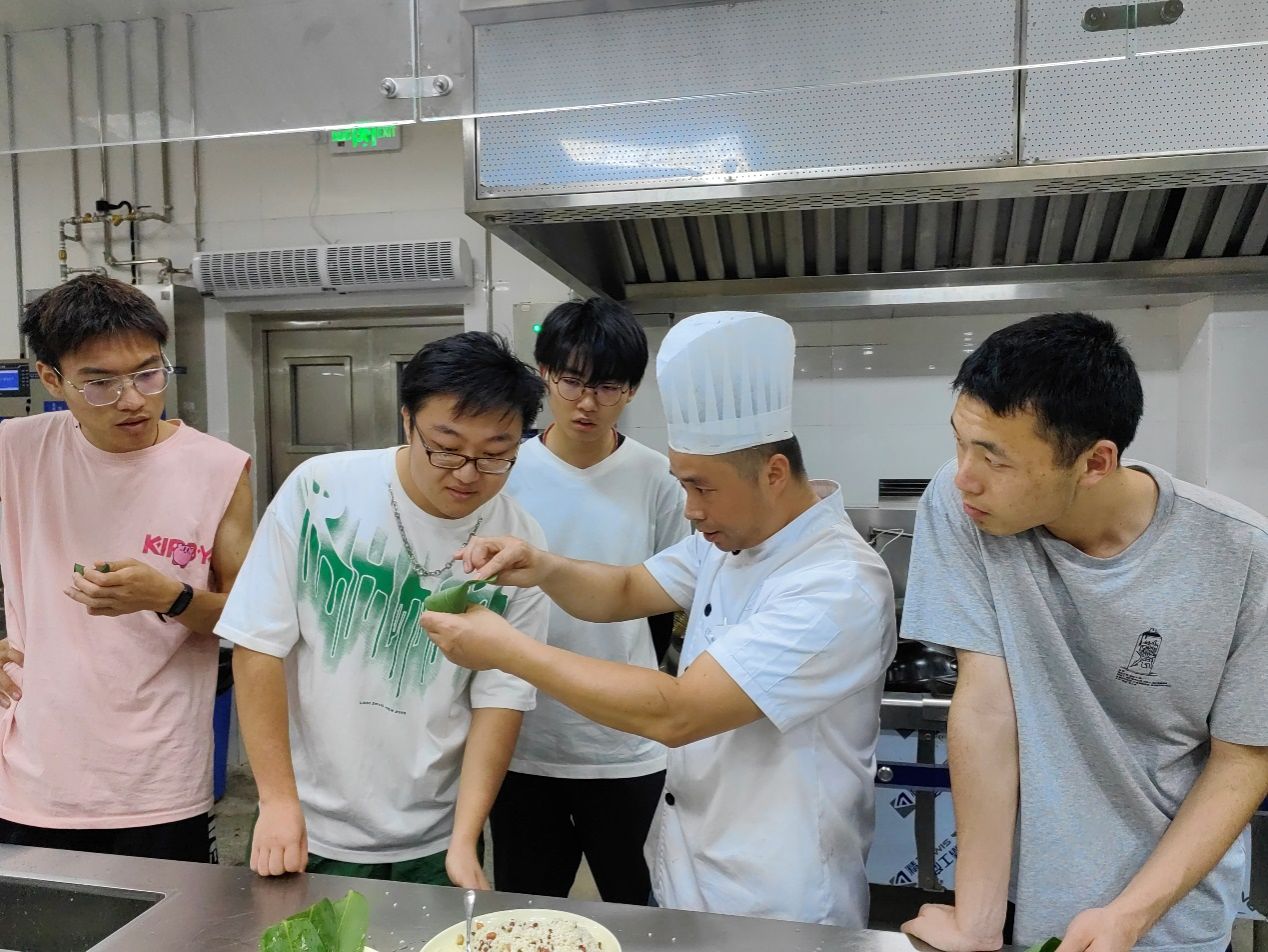 为传承和弘扬中华民族传统文化,进一步增强学生的学习能力和动手能力,william威廉中文官网饮食服务中心于2024年6月6日在《食话食说》教室举办“享文化传承 品端午粽香”学包粽子劳动教育实践活动,共48名学生参加。