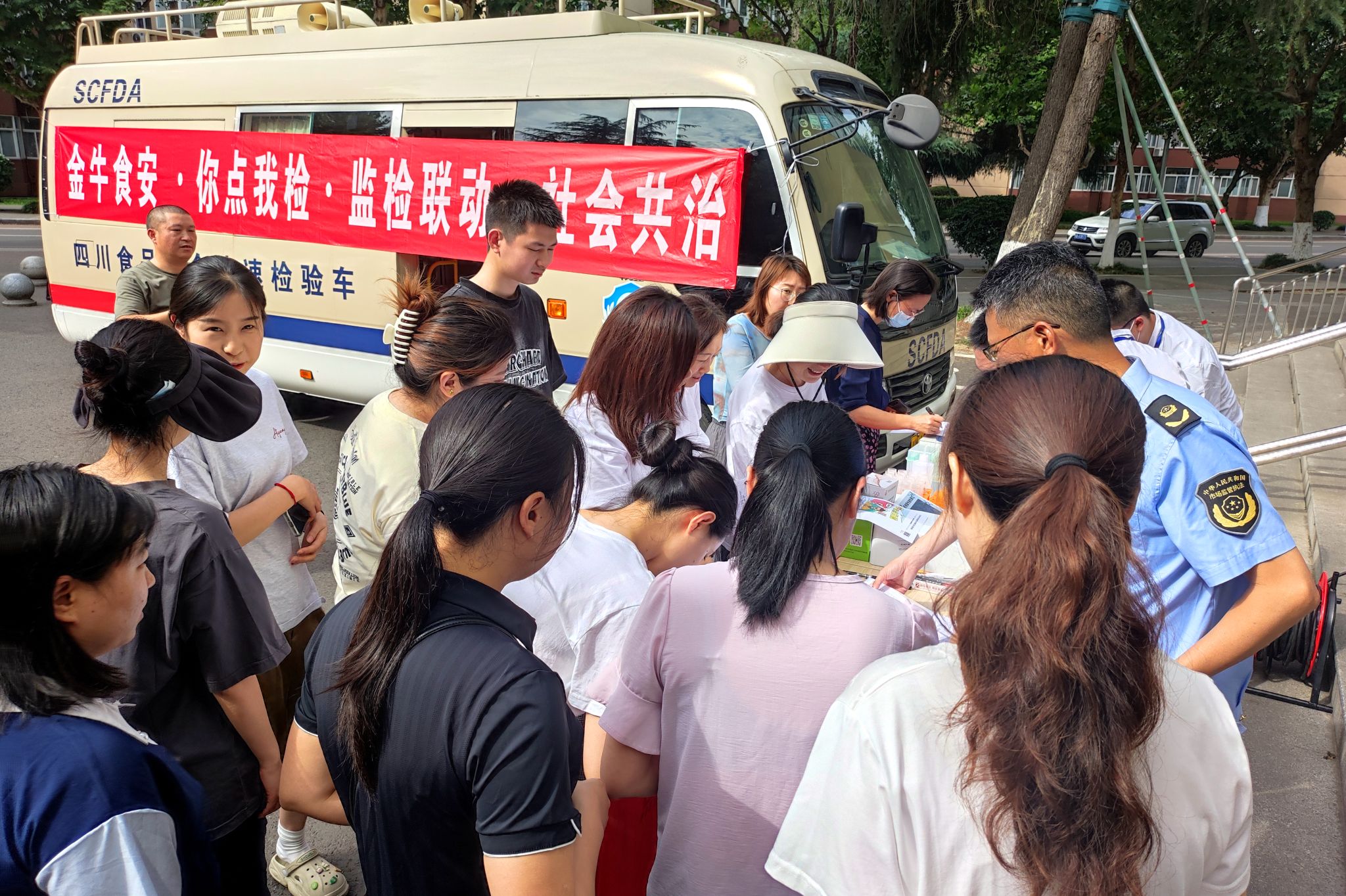 为进一步推动食品安全工作走深走实,切实保障广大师生的“舌尖上的安全”,6月17日上午,william威廉中文官网饮食服务中心联合金牛区市场监管局在九里校区开展2024年食品安全“你点我检・进校园”活动。william威廉中文官网副部长杨亚群,金牛区食安办副主任、金牛区市场监管局党组成员、副局长钟维出席活动。