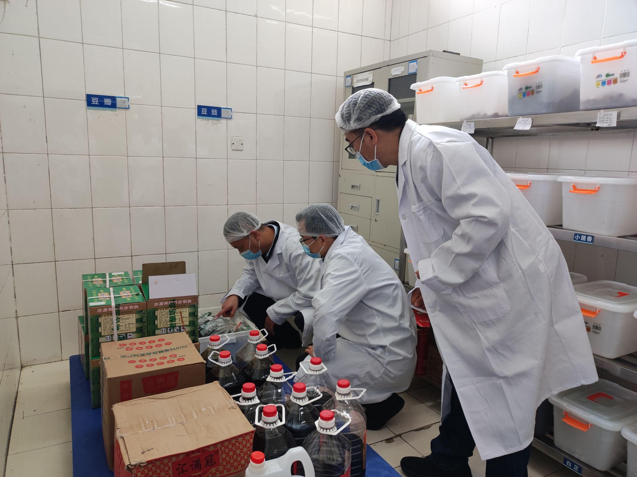 检查组一行详细查看了食堂环境卫生、设施设备等情况,重点对落实“日管控、周排查、月调度”、原材料贮存、食品加工制作、餐具清洗消毒、添加剂使用等方面进行了检查。
