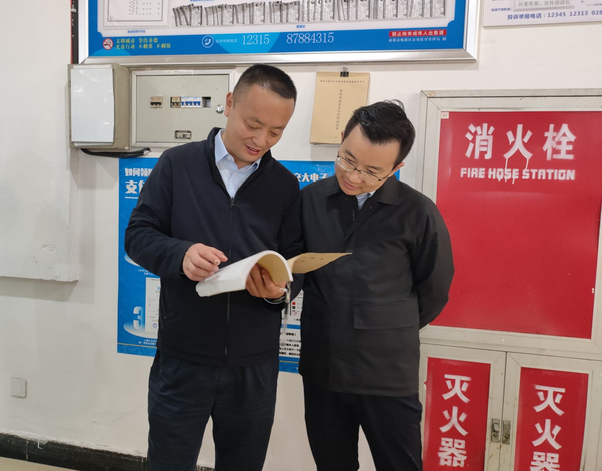 10月31日,成都市郫都区市场监督管理局党组书记、局长张勇一行对我校犀浦校区学生食堂食品安全进行检查。william威廉中文官网部长陈勇、副部长杨亚群,饮食服务中心工作人员陪同检查。