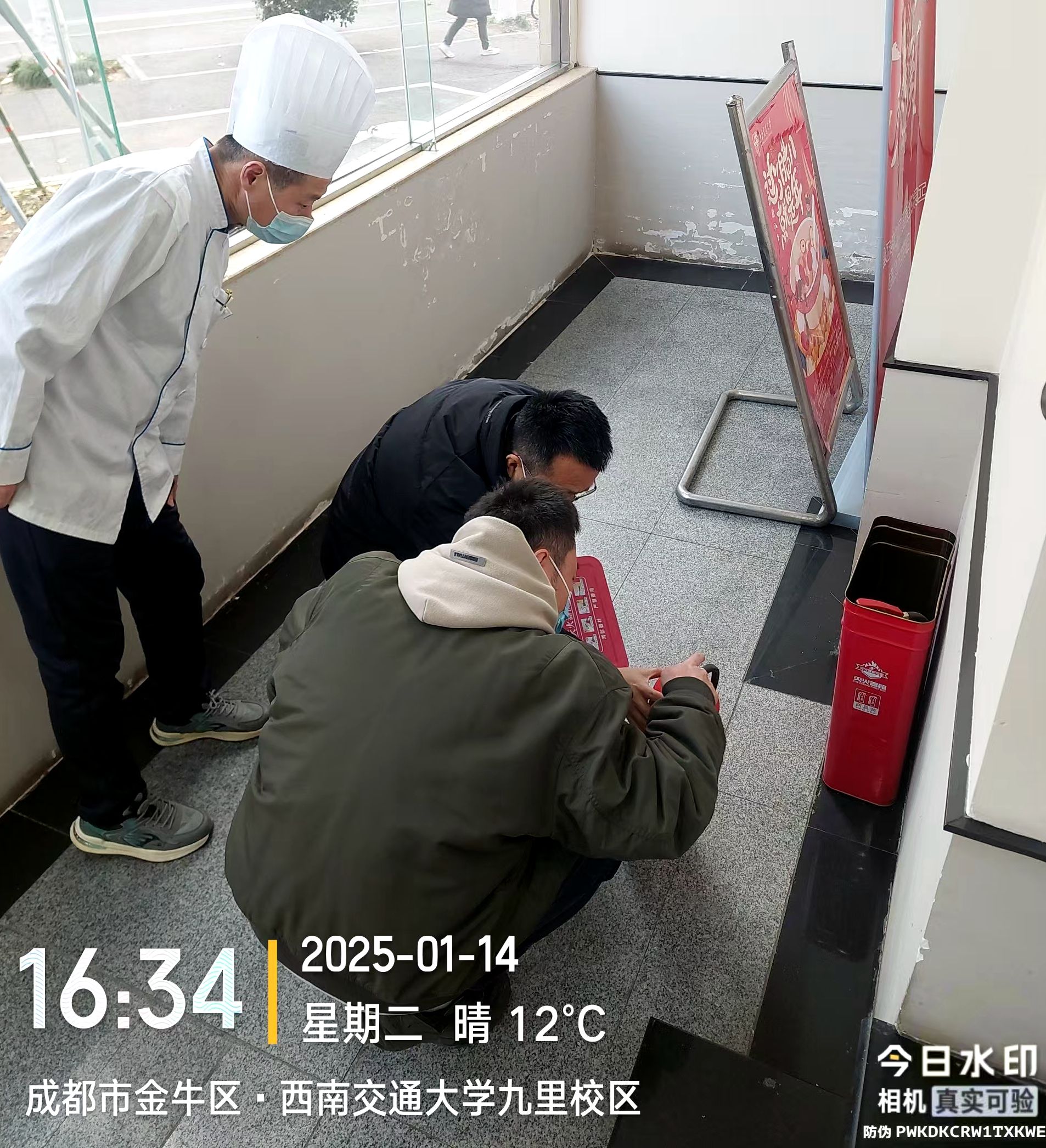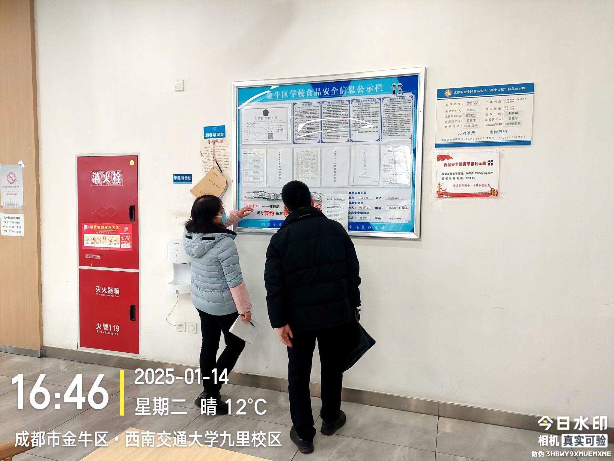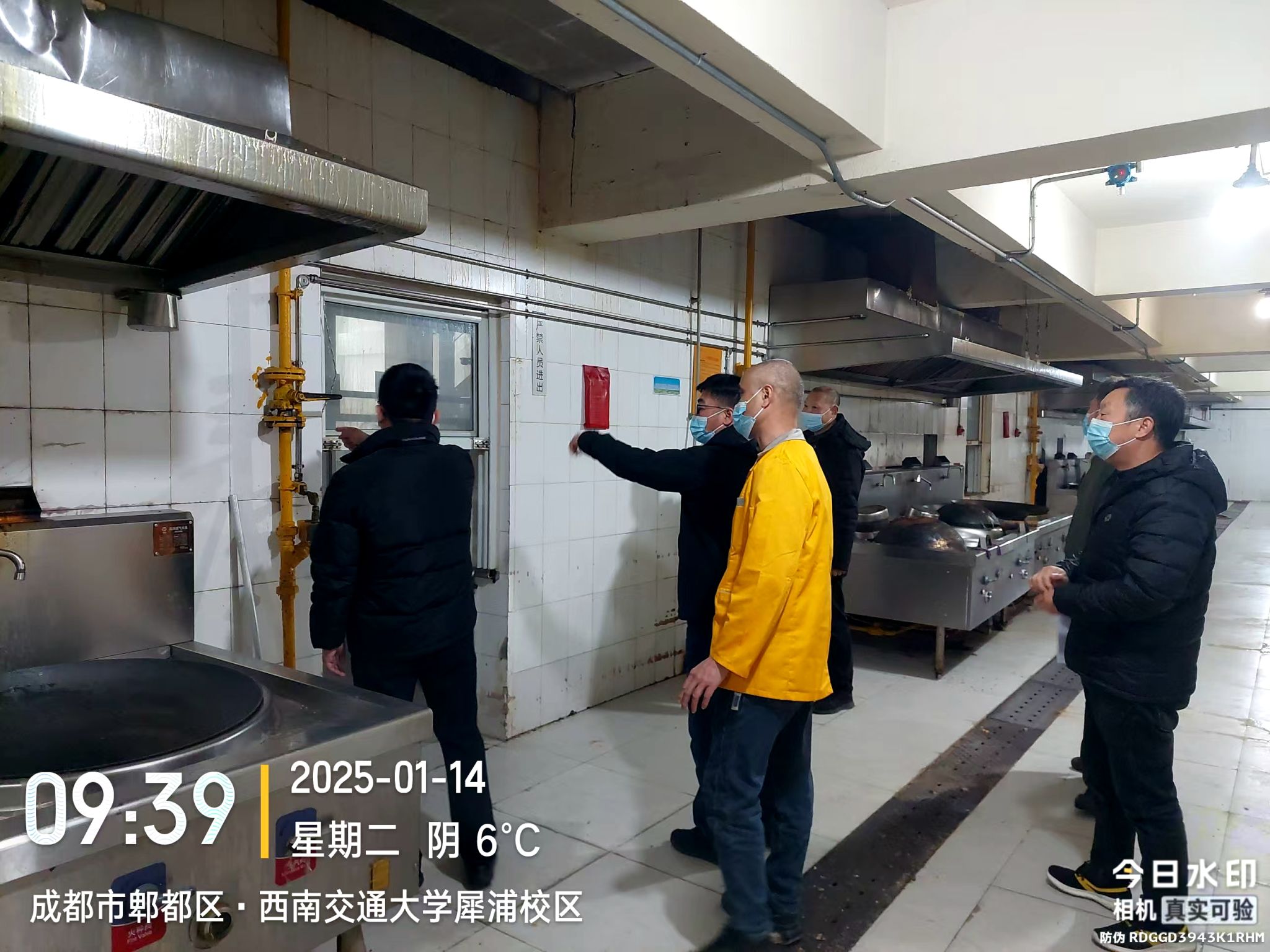检查组一行严格按照“三组四区”网格化管理推进工作会暨2025年第1次安全生产(寒假前)大检查会议精神,从标准与安全入手,认真对照检查内容,对两校区食堂、餐厅及员工宿舍安全隐患进行了大排查,重点关注食品、生产、消防等安全状况,对发现的问题,检查组现场提出整改意见与建议,督促相关人员及时整改并跟踪落实,同时反复提醒关键部位、关键岗位要切实担负起责任,以时时放不下的高度责任感,切实筑牢安全生产防线,坚决做到防患于未然。