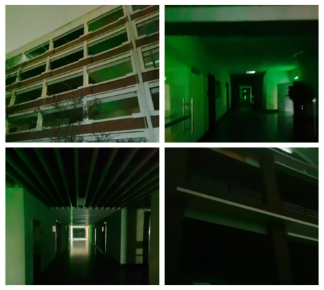 (绿色灯光为消防通道指示灯光)
