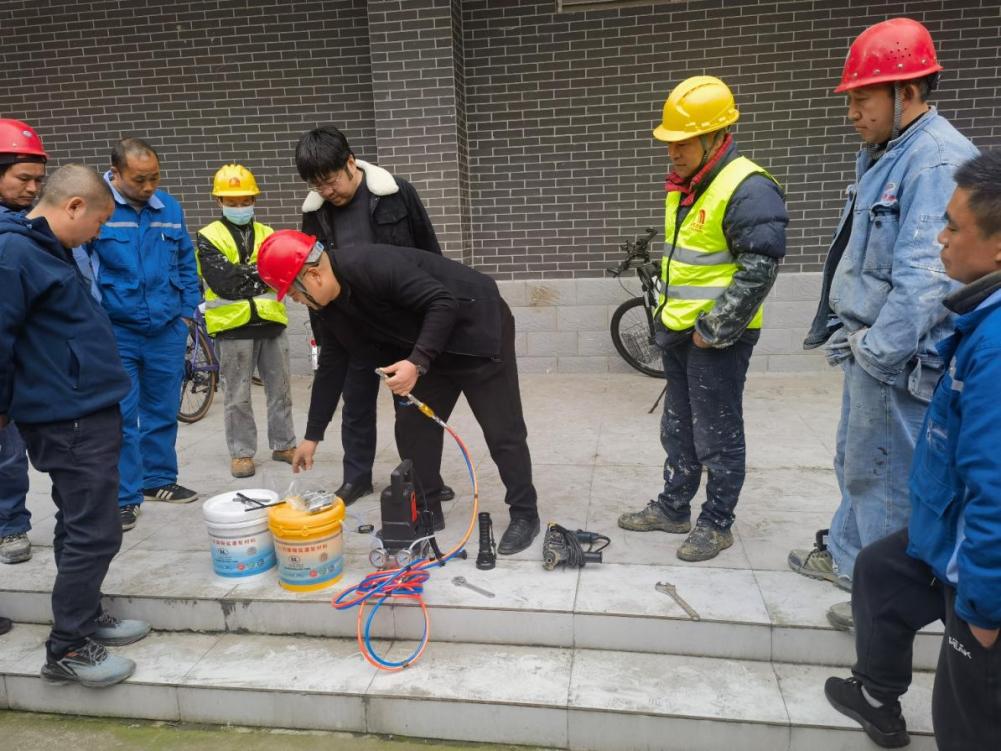 郑主任在培训中强调了此次学习的重要性,他鼓励参训人员要珍惜这次难得的学习机会,认真听讲、仔细观察、积极上手实践,遇到不懂的问题要及时提问。他要求大家必须熟练掌握专用设备的操作方法、材料的配比使用以及局部漏水点漏水走向的判别等维修常识,以确保在应急维修工作中能够做到精准、有效。