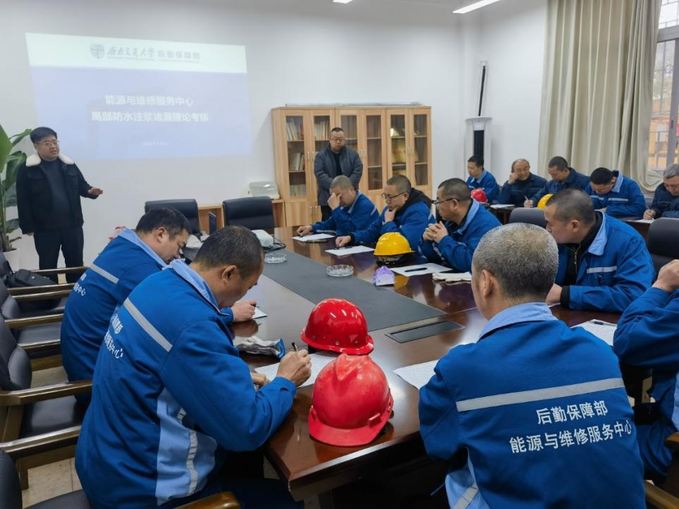培训由中心主任郑永川主持,中心内的20余名业务骨干积极参与,共同学习应急维修的新知识和技能。培训采用“理论+实操”的结合方式,不仅让参训人员系统地了解了当前市面上成熟的防水应急维修工艺,还让他们学会了如何判断漏水原因、查找漏水点位、了解应急维修材料的特性,并掌握了相关专用设备的操作方法。