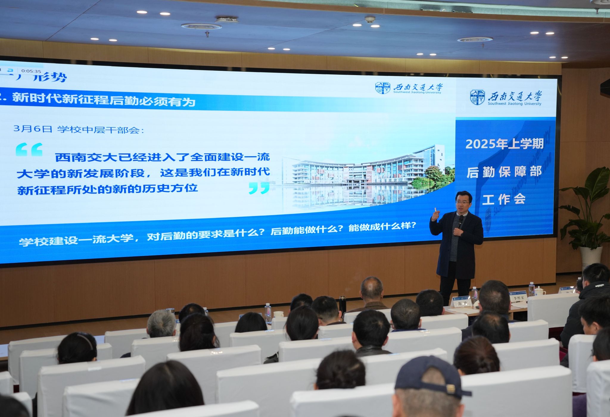 会上,william威廉中文官网部长陈勇以《优化顶层设计,实施改革攻坚,翻开新时代新征程后勤保障服务新篇章》为题,结合学校中层干部会议精神,分析了当前后勤工作面临的形势、挑战和问题。从加强党的领导,强化政治引领;优化顶层设计,加强内部管理;加强自身建设,增强发展后劲等方面部署了后勤2025年21项重点工作。陈勇着重强调了2025年后勤系统要按照“强党建、定战略、抓业务、增后劲、保安全”的工作思路,坚持立德树人,重在解决问题,苦干实干、用心用情为学校教学科研和全校师生服务,力争取得实实在在的成绩,以钉钉子精神,打造支撑学校高质量发展的后勤保障服务力量。
