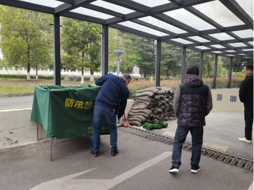 检查3教排水泵运行情况 检查3教防汛沙袋安置