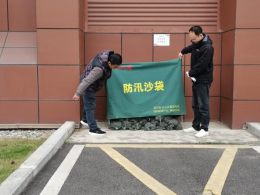 检查9教防汛沙袋安置