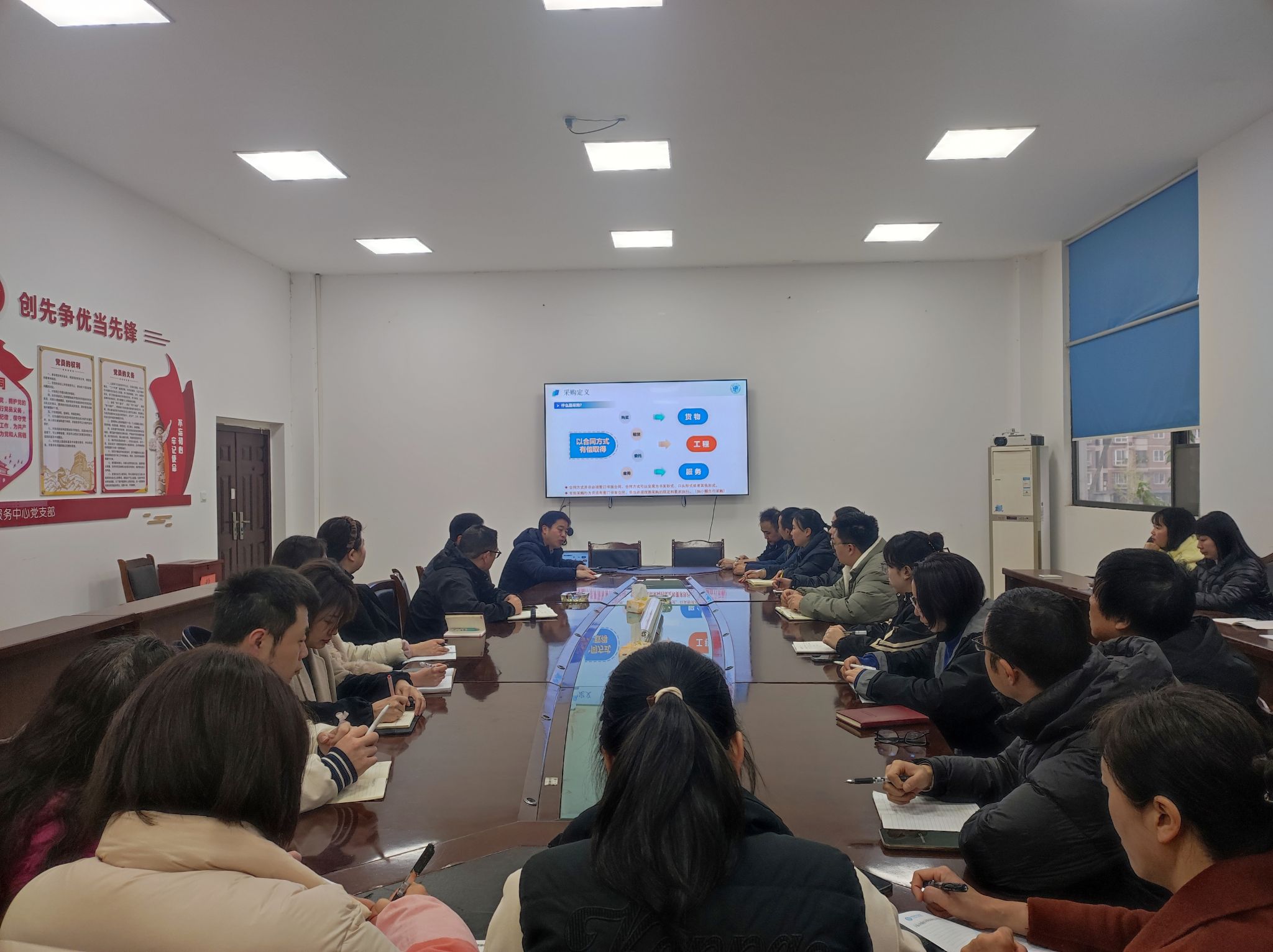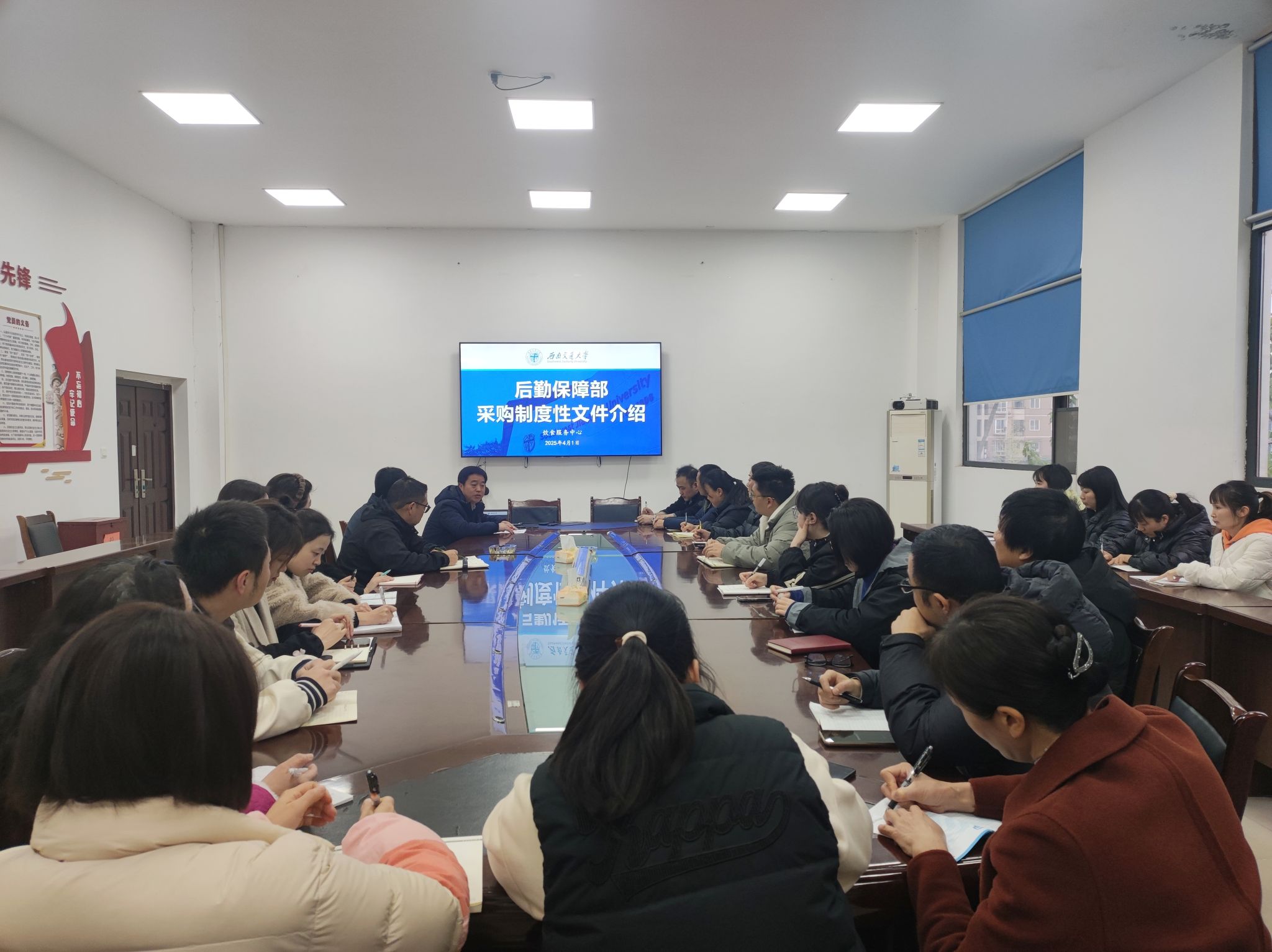 会议聚焦五大核心环节:一是采购全流程标准化管理,二是需求论证程序规范化,三是小额采购适用边界,四是合同风险防控要点,五是库房安全管控体系。李主任结合工作实际,对制度文件的关键条款与操作规范进行了深入解读。