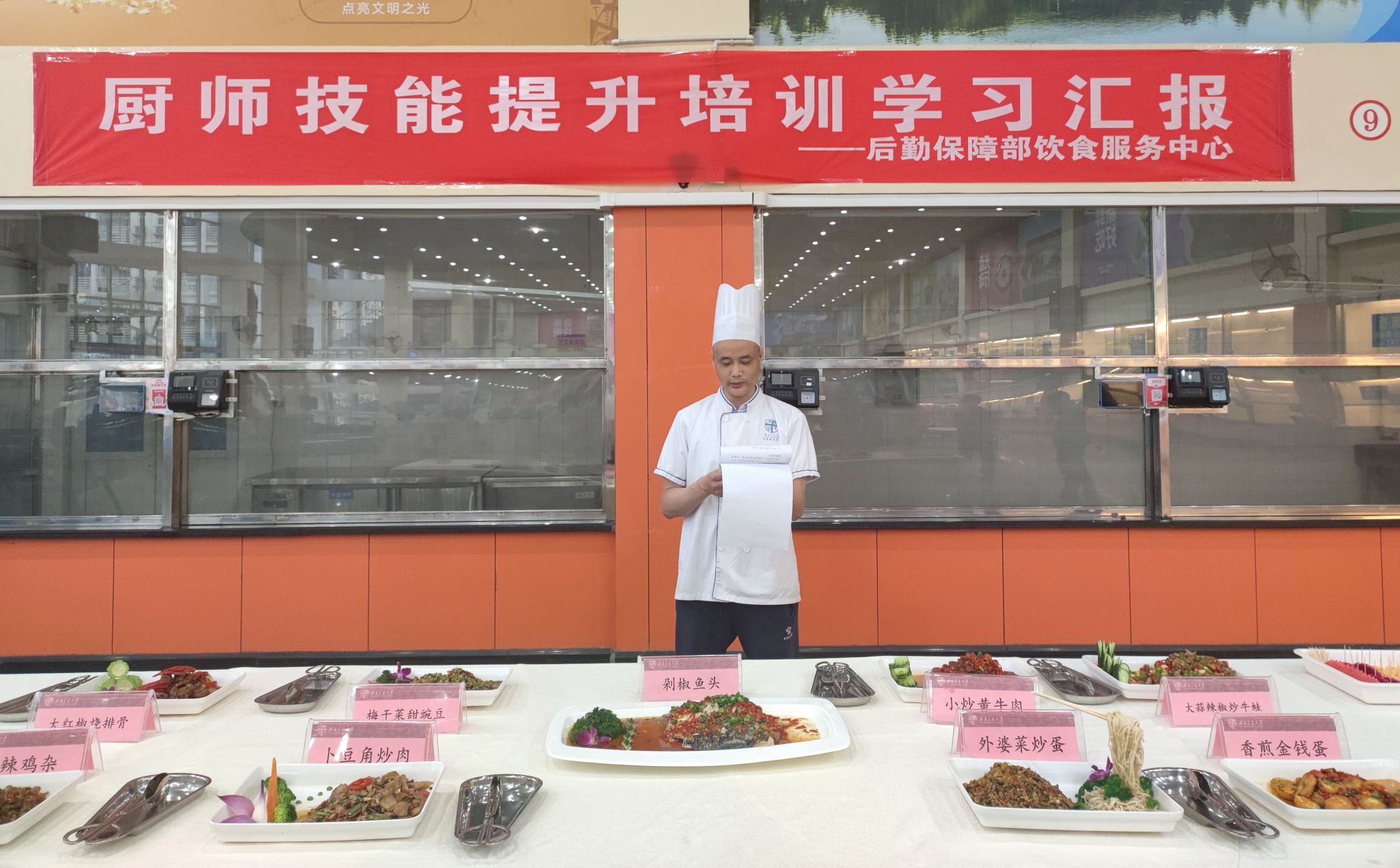4月29日,饮食服务中心在犀浦校区学生一食堂举行厨师技能提升培训学习汇报会。