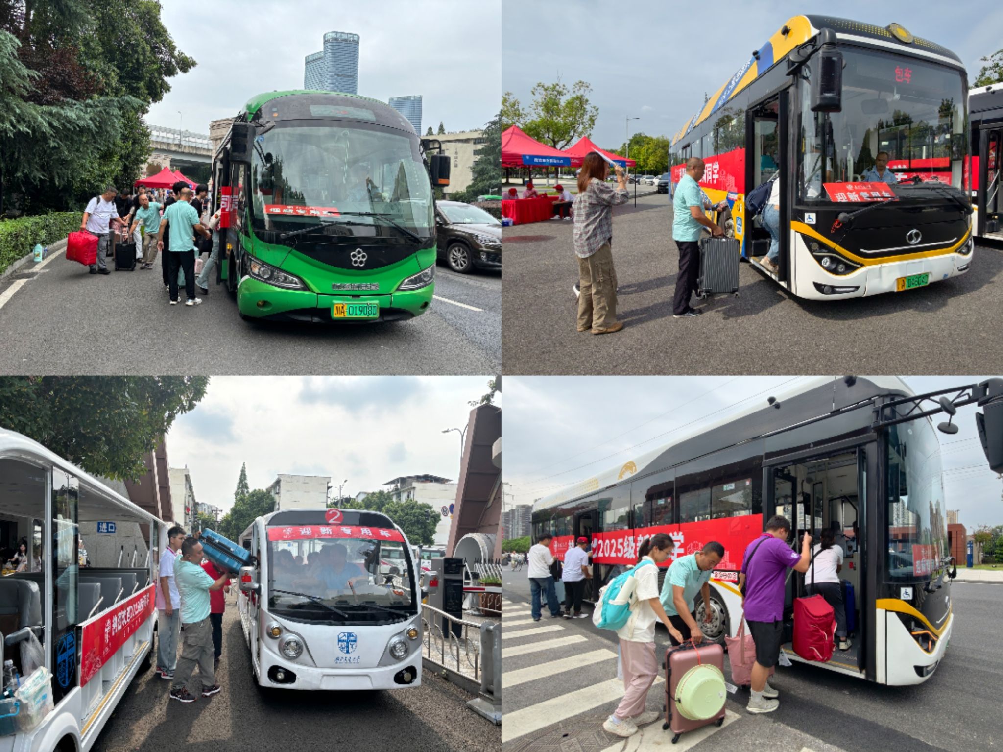 驾驶员“C位出道”:在迎新现场,校车驾驶员们无疑是大家目光的焦点。他们身兼数职,切换自如: