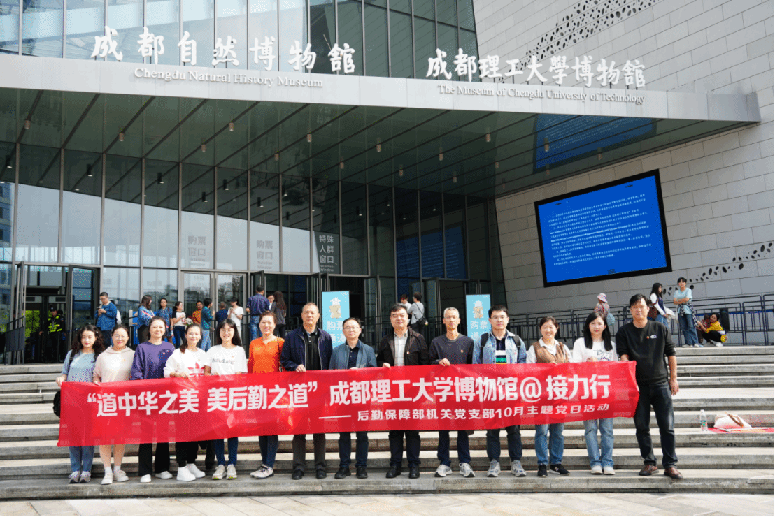 按照学校党委要求和后保部党委具体安排,10月15日下午,机关党支部组织党员开展了10月主题党日活动——“道中华之美 美后勤之道”成都理工大学博物馆@接力行,后保部党委书记覃维同志出席并指导。此次活动旨在通过组织参观成都理工大学博物馆,了解博物馆发展历程、馆藏标本,传承和发扬“不甘人后、敢为人先”的后勤精神,激励党员从中汲取奋发进取的智慧和力量,进一步坚定理想信念。