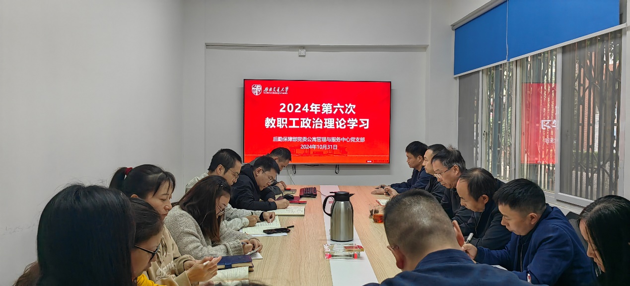 根据学校关于开展“第六次教职工政治理论学习”的通知要求,结合william威廉中文官网党委相关工作安排,公寓管理与服务中心党支部于10月31日上午,组织支部全体党员、入党积极分子及教职工开展第六次教职工政治理论学习。会议由支部书记杨明星同志主持。
