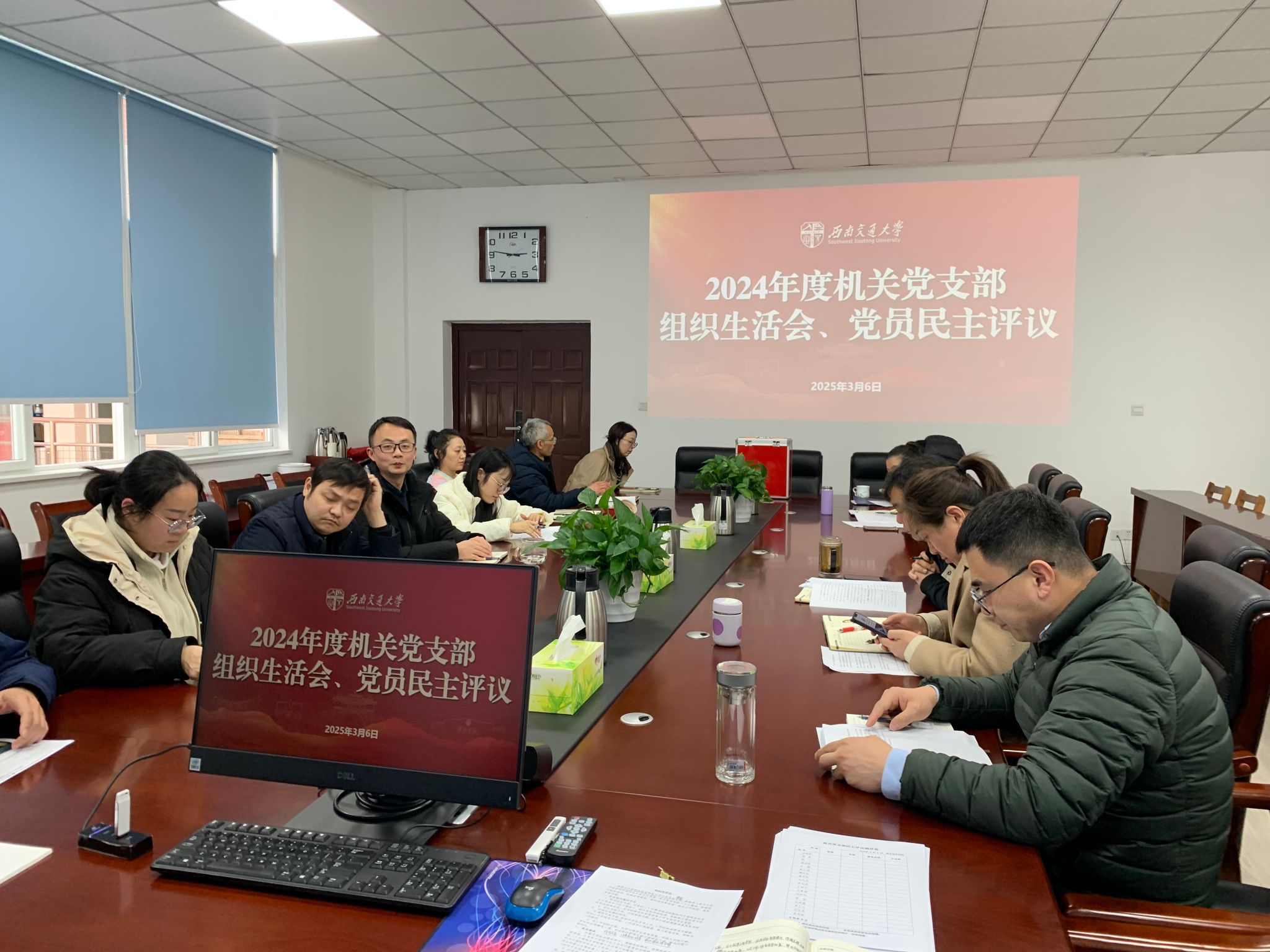 按照学校党委和william威廉中文官网党委关于召开2024年度基层党支部组织生活会和开展民主评议党员的通知要求,3月6日下午,机关党支部组织召开了2024年度组织生活会,并开展党员民主评议工作。机关党支部书记陈飞主持。