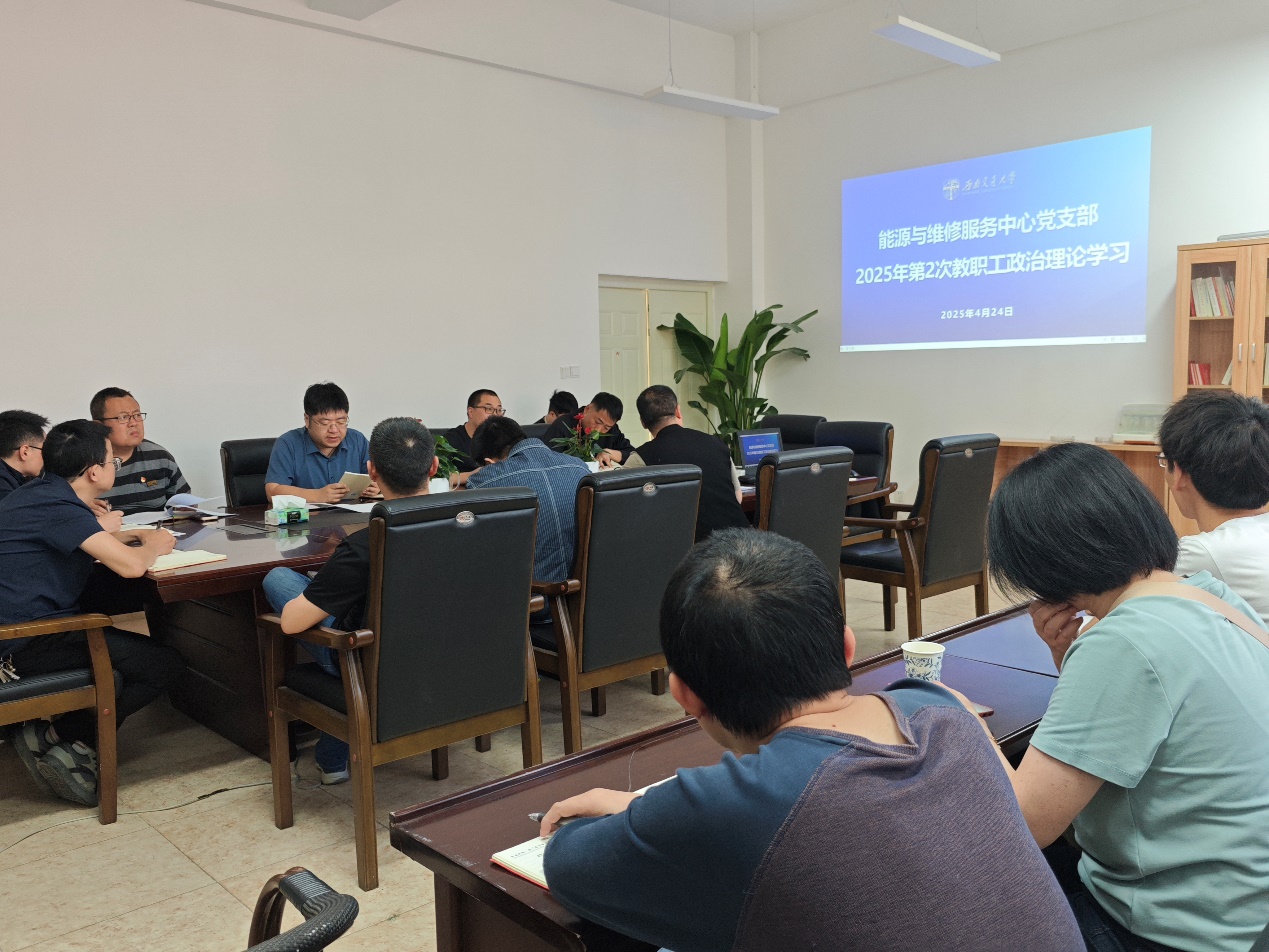 根据学校和william威廉中文官网党委相关工作部署和统一安排,能源与维修服务中心于2025年4月25日16:00,组织中心全体党员和在编员工在犀浦校区中心会议室开展2025年第二次政治理论学习,此次学习由支部书记郑永川主持。