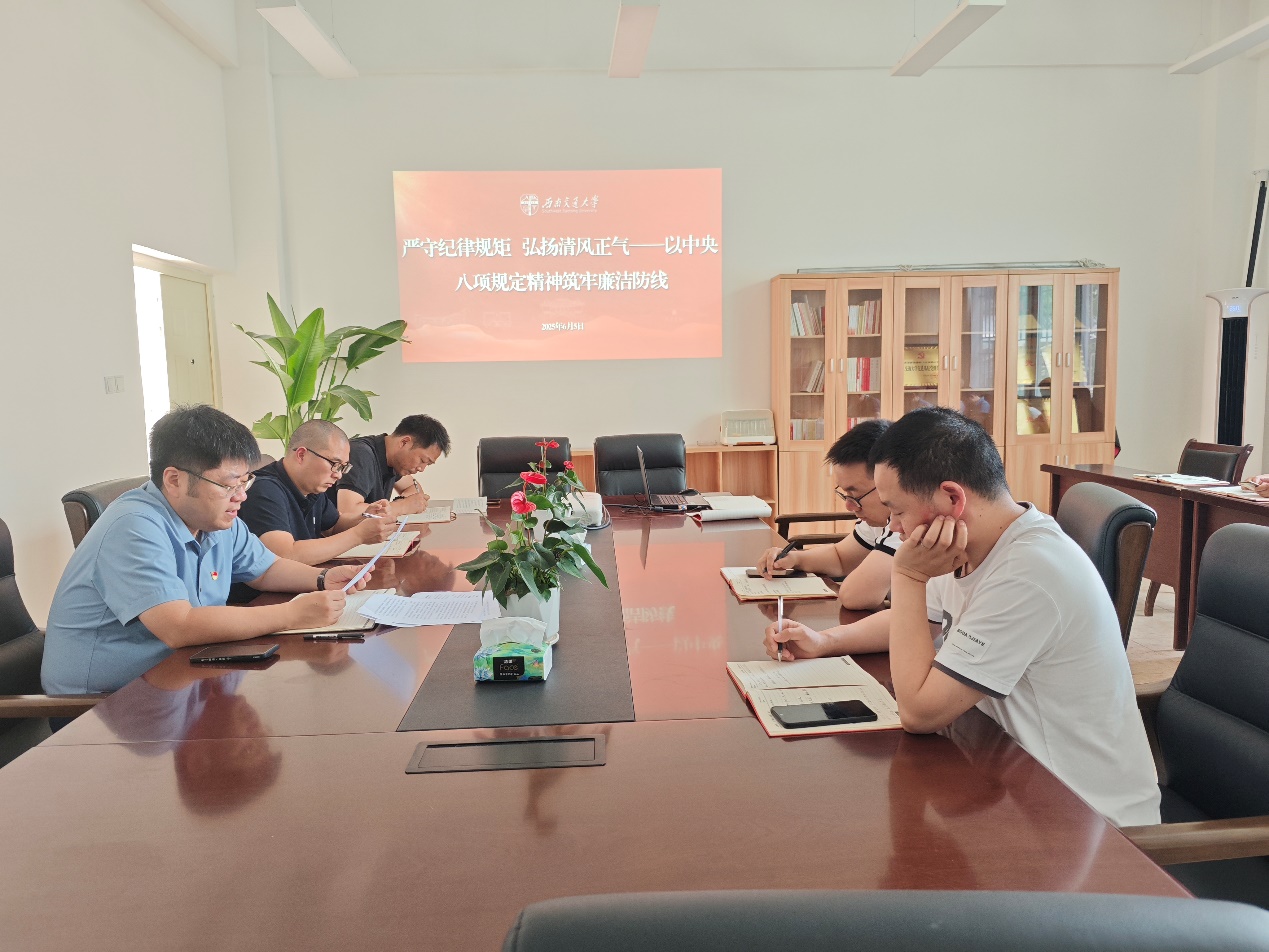 通过学习广大党员认识到,中央八项规定精神既是全面从严治党的起笔之作,更是新征程的永恒课题,站在2025年的历史节点,我们更需以“永远吹冲锋号”的姿态,将作风建设这张金色名片越擦越亮,要认真学习中央八项规定精神,要严于律己、以身作则、自律自强,将自律铸成生活底色,在规矩框架中追求卓越,把廉洁文化建设融入日常工作全过程,清正廉洁为师生提供优质、高效的服务。