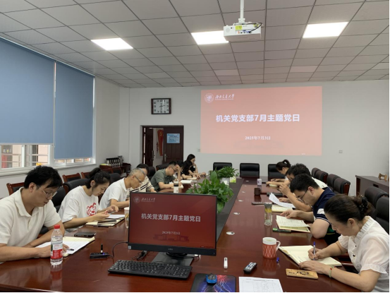 7月3日下午,机关党支部在williamhill英国官网楼二楼会议室扎实开展7月主题党日,持续开展深入贯彻中央八项规定精神学习教育,并就学校党委党员集中培训开展交流研讨。党支部书记陈飞主持会议。
