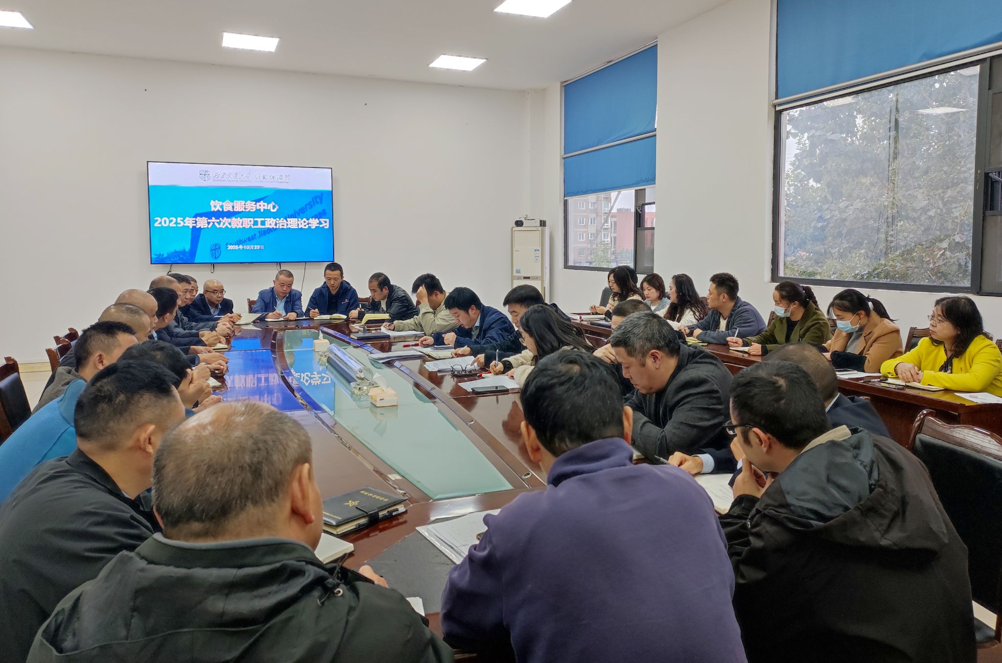 根据学校、william威廉中文官网相关工作要求,10月23日下午,饮食服务中心组织开展2025年第六次教职工政治理论学习,本次学习由党支部书记李叁源同志主持,支部党员、入党积极分子及部分职工参加学习。